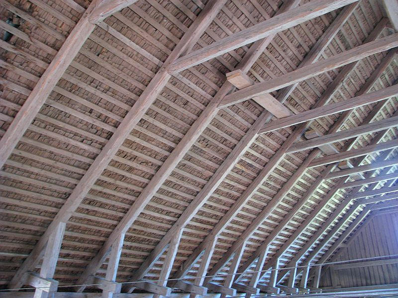 In der riesigen Scheune mit dem tollen hölzernen Dachstuhl