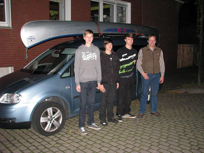 - Kanu, drei Jungs, und los gehts.