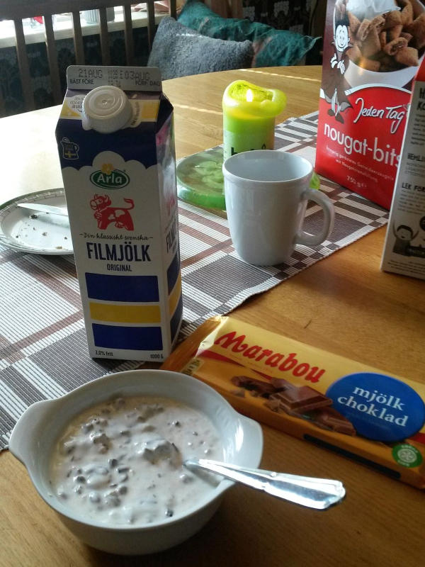 Fangen wir mit dem wichtigsten an: Filmjölk mit Schokomüsli und