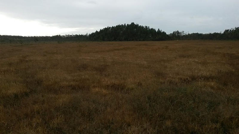 Absoluter Gegensatz! - Flaches Moor, verlandeter See mit Waldinseln.