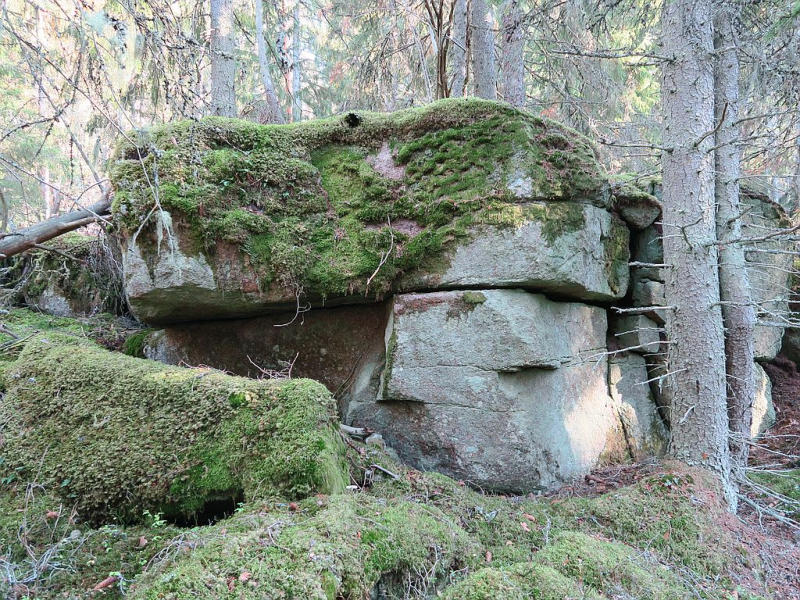 Markante Geologie - weiter oben wurden Mühlsteine gewonnen.