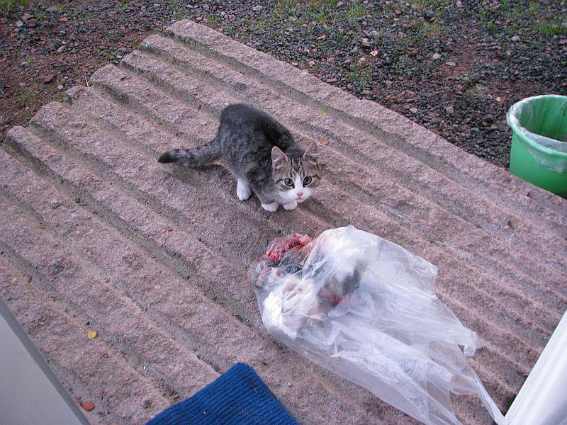 Selbst die kleine Miezekatze ist an Fischresten interessiert.
