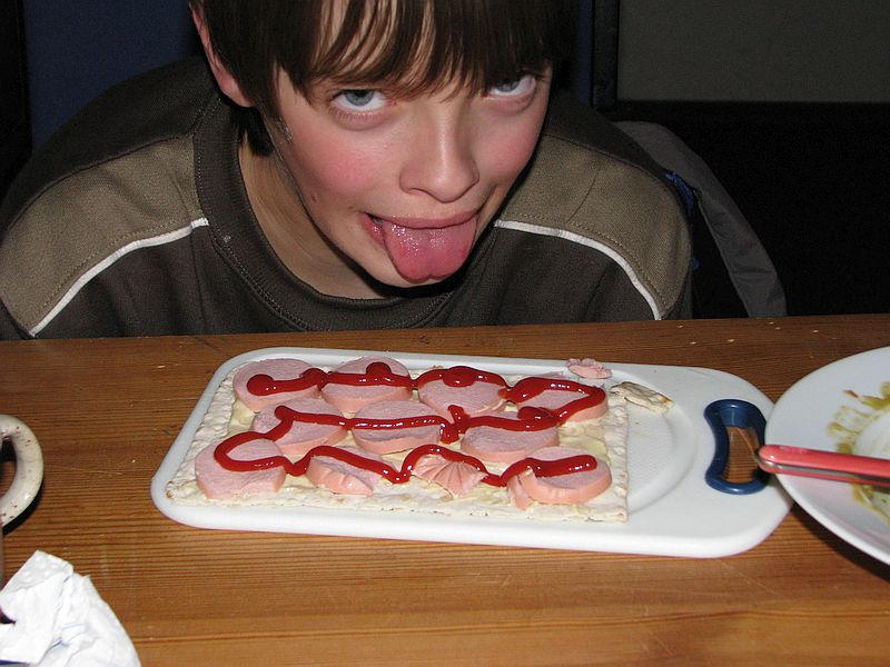 Nicht für jedermann - Sarek-Fladenbrot + Fjällbrynt + Fleischwurst + Ketchup !