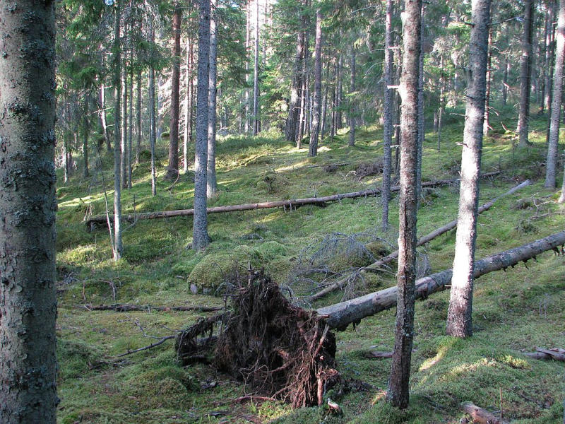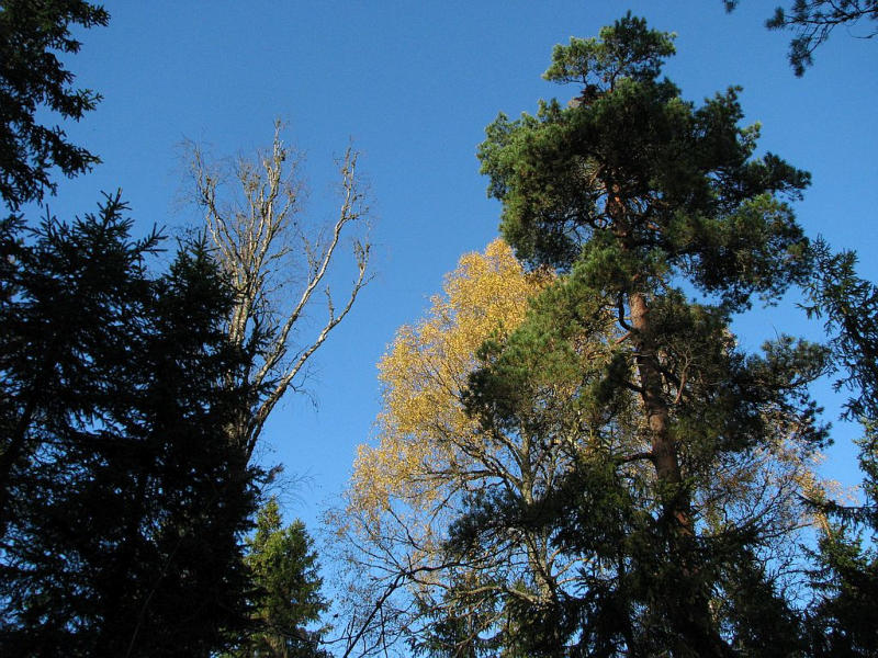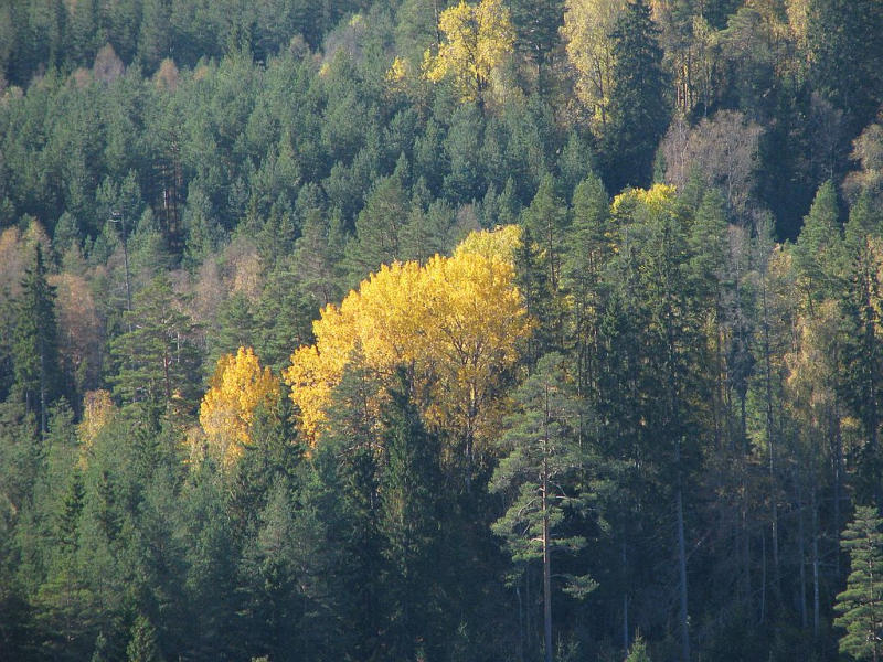 Typischer Wald: Fichte, Kiefer, Birke, Aspe.