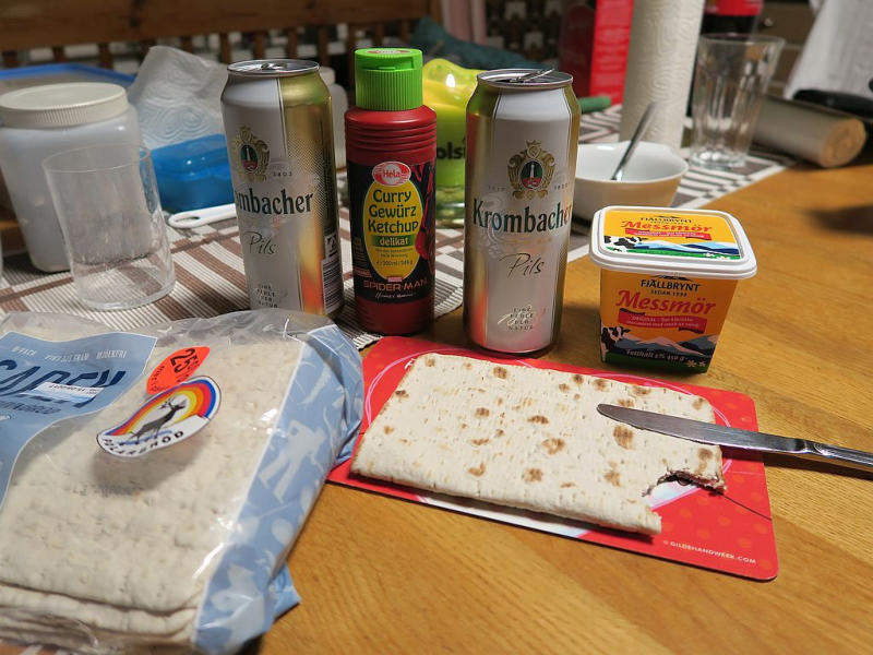 Dann: Fladenbrot vom Sarek-Nationalpark mit Fjällbrynt-Aufstrich, belegt mit Salami und