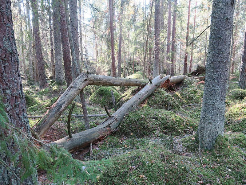 Pilzbiotop an liegenden Fichten.